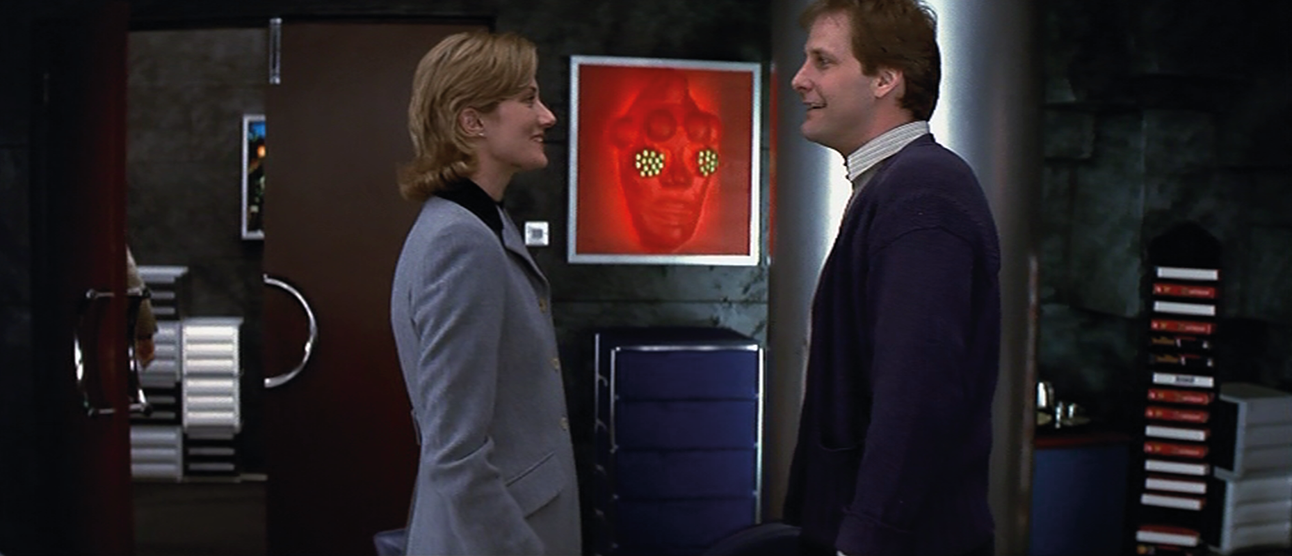 When Roger’s telling Cruella about his wife’s pregnancy, he almost mentions they’re having puppies too. Cruella replies with:
